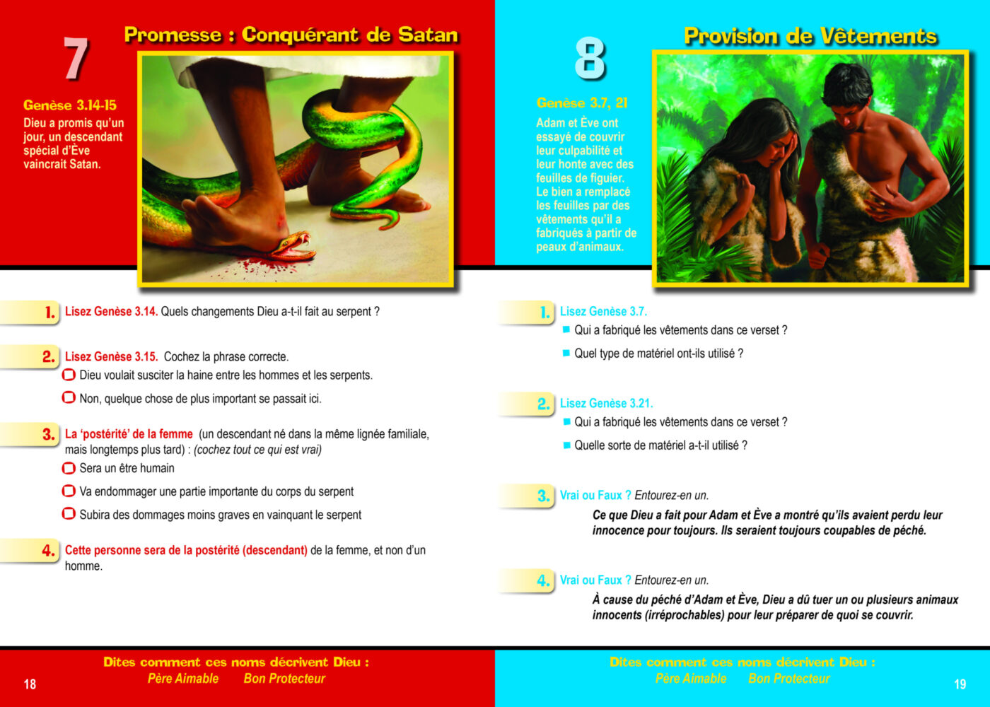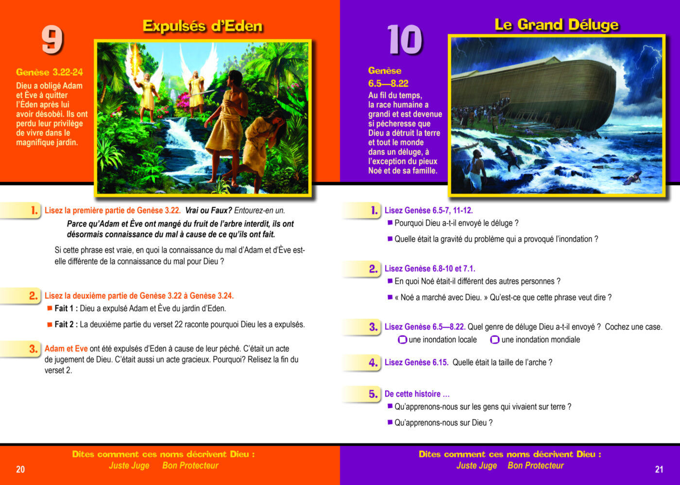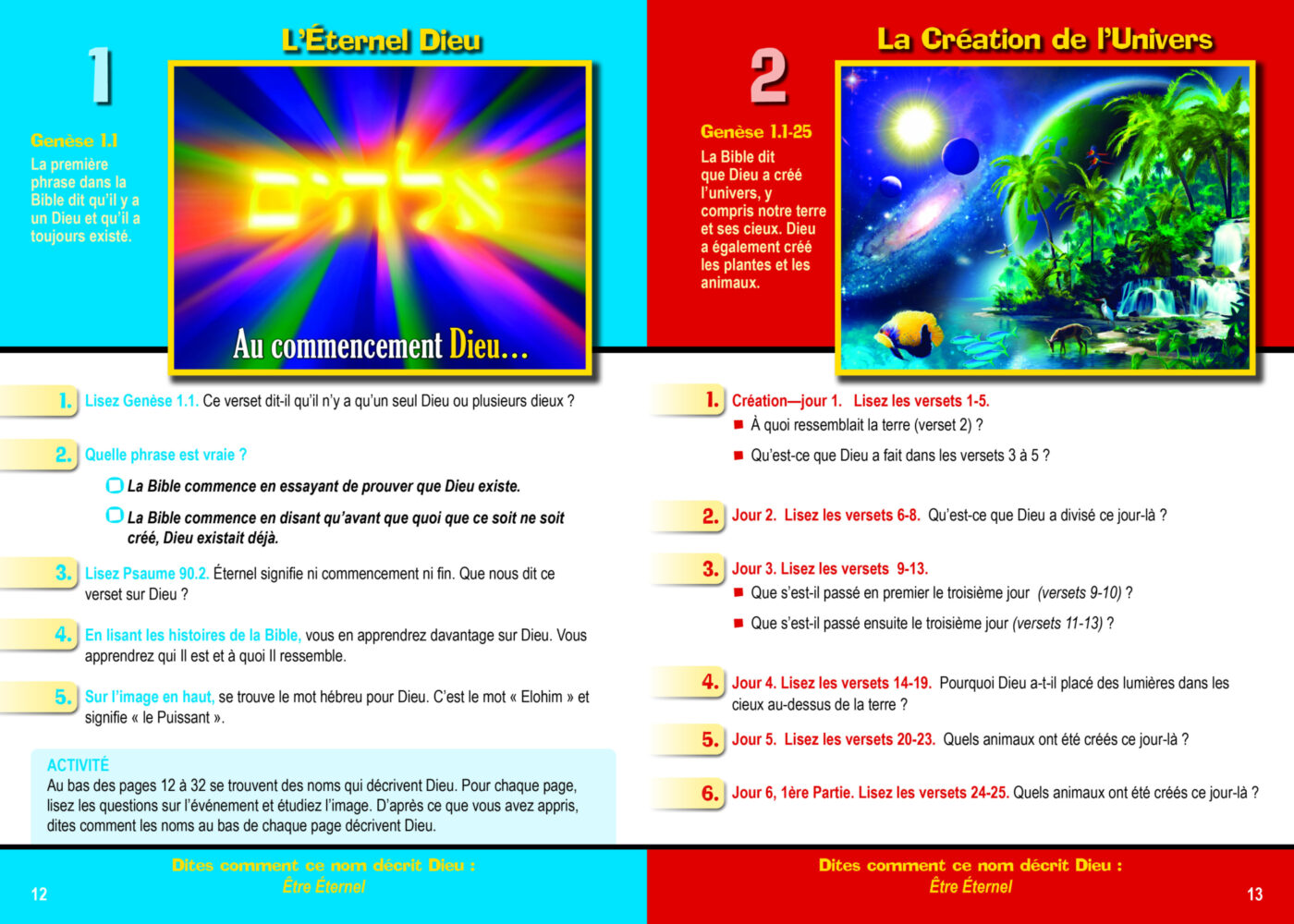 La Simple Histoire de l’Espérance (The Simple Story of Hope - French) has a full page dedicated to each of the 40 Bible event-lessons listed below with ample room for student responses and notes. The book contains 64 pages and is formatted in a workbook style. Its time-versatile “shrinkable and expandable" presentation is great for telling or teaching the Bible's big redemptive story in as few as fifteen minutes or as long as twenty or more hours. It is designed for evangelistic Bible studies, one-on-one or in small groups, but is also helpful in teaching God's redemptive plan to believers.